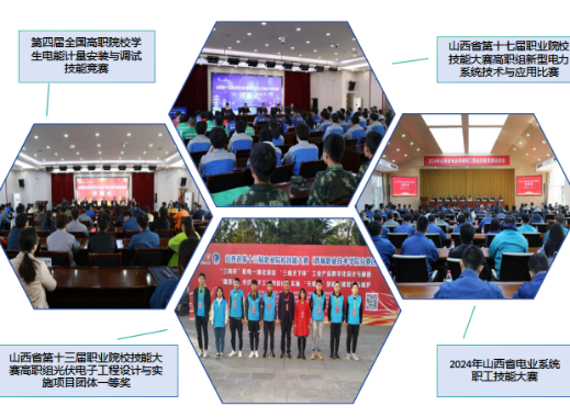 生电能计量装置安装与调试技能竞赛”、三届山西省职业技能大赛“风光互补发电系统安装与调试”赛项和“建设工程数字化计量与计价”赛项,给学生提供了切磋技艺、展示水平的舞台,在校园迅速掀起“学技术、练本领、强素质”的热潮。近三年学院先后组织学生参加校级以上竞赛11,斩获校级以上竞赛团体荣誉37项、个人荣誉31项。
