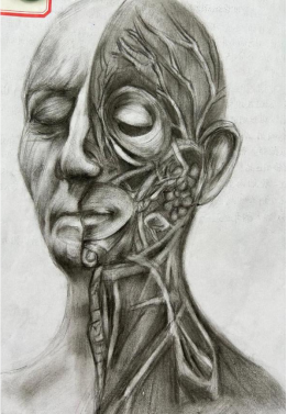 大赛自启动以来,通过线上线下多渠道宣传,迅速点燃了学生们的创作热情。在作品创作阶段,同学们充分发挥专业知识与艺术创意,利用素描、水彩、彩铅等多样形式,将书本中抽象的人体解剖结构转化为生动鲜活的艺术作品。从精密复杂的神经系统到形态各异的器官组织,每一幅作品都精准还原了解剖学细节,同时融入独特的构图与色彩设计,展现出对医学知识的深刻理解与创新表达。