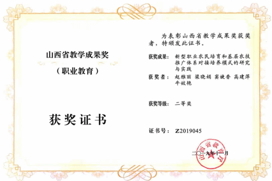《新型职业农民培育和基层农技推广体系对接培养模式的研究与实践》获2019年度二等奖