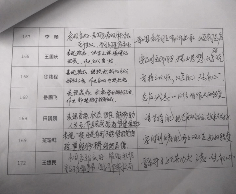 “孝德养正班”学生转化跟进评价表