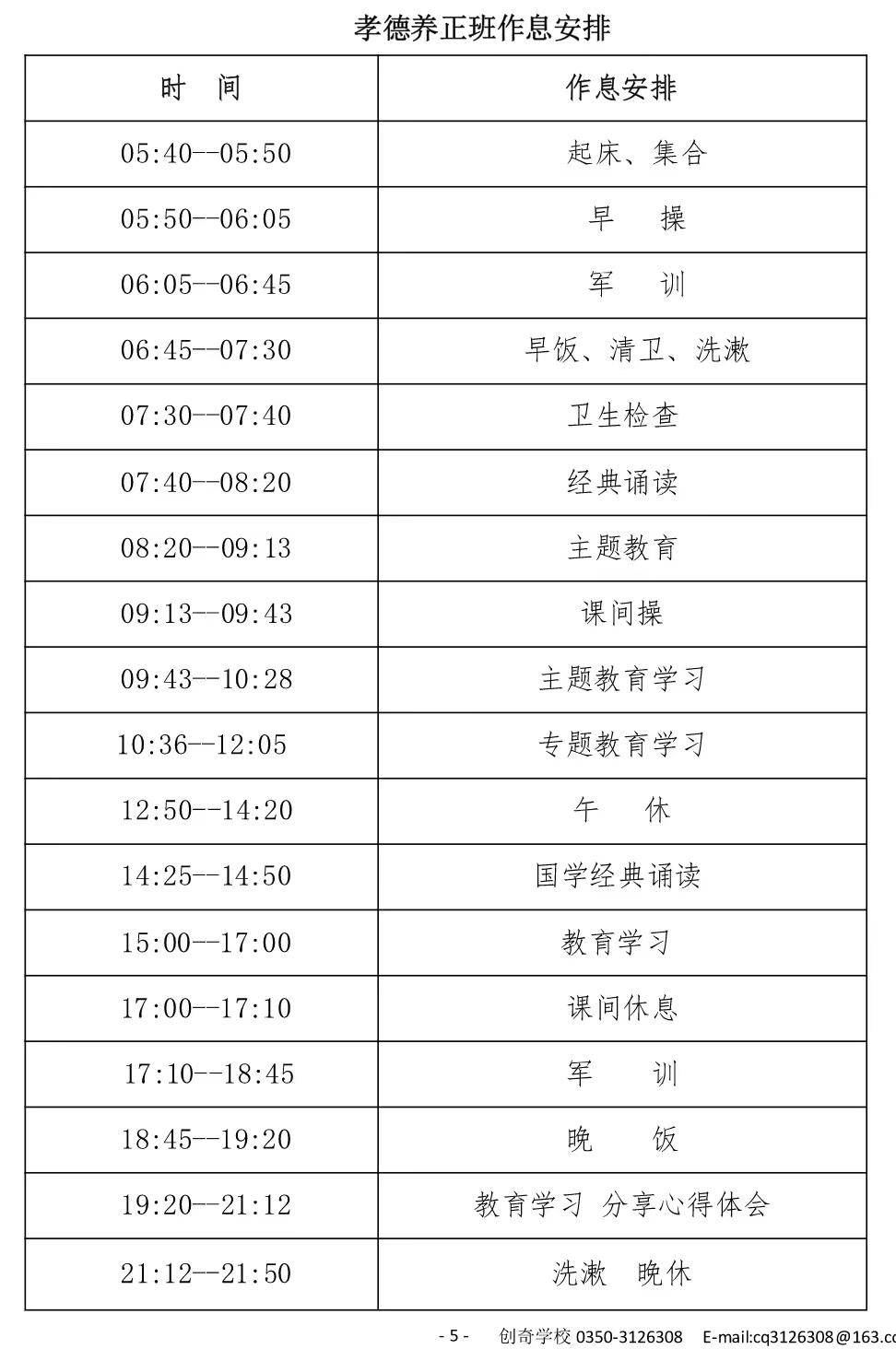 五、孝德养正班学生名单、具体课程及作息时间安排