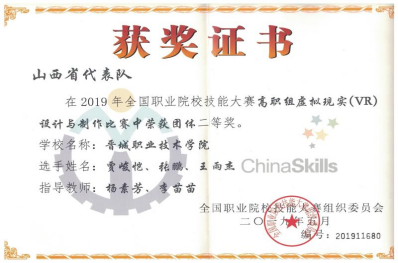 u 2019年全国职业院校技能大赛高职组虚拟现实(VR)设计与制作比赛团体二等奖
