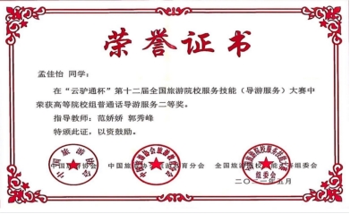 u “云驴通杯”第十二届全国旅游院校服务技能(导游服务)大赛高等院校组普通话导游服务二等奖