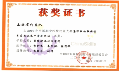 u 2019年全国职业院校技能大赛高职组物联网技术应用团体三等奖