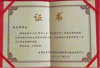 u 2020年全国高等学校第三届大学生就业创业人物事迹征集