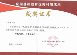u 王小桃老师获全国基础教育优秀科研成果一等奖