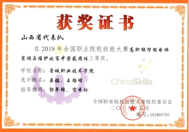 u 2019年全国职业院校技能大赛高职组智能电梯装调与维护团体三等奖