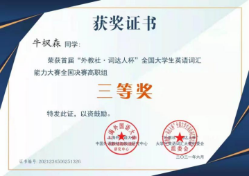 u 首届“外教社•词达人杯”全国大学生英语词汇能力大赛全国决赛(高职组)三等奖