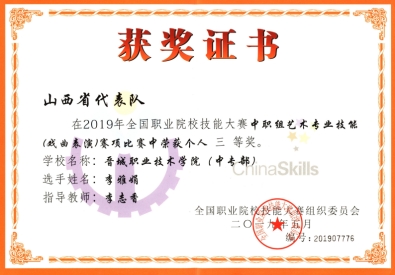 u 2019年全国职业院校技能大赛戏曲表演个人三等奖