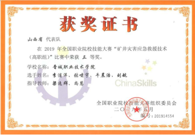u 2019年全国职业院校技能大赛矿井灾害应急救援技术(高职组)项目三等奖