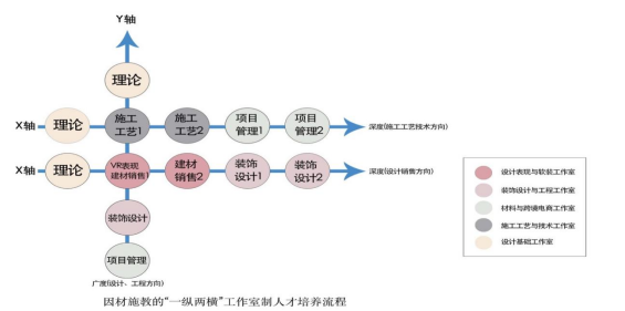 SCP微主体模式充分发挥学校在人才培养和教育标准化上的优势,在专业教育的基础上植入双创教育,制定专创融合教育标准,采用“晋级考核”方式实现“终极创业目标”,实现“一次培养,两方收益”。(1)校企双方基于职业教育“五个对接”,共建人才培养方案、专业教程、课程标准、数字资源包、认证体系等一整套完整的专创融合教育标准。通过依次递进、有机衔接,科学合理的双创教育标准体系建设,实现双创教育与专业教育的有机融合,彰显了职业特色。(2)突破传统的一维考核方式,依据学生在理论学习阶段表现出的特长,基于设计工作流程,对于专业技能均衡的学生适用专业广度提升为目标的“一纵”考核方式;对于某一技能突出的学生适用设计、施工深度学习为目标的“两横”考核方式。单门课程采用百分制考核,折算对应学分后计入模块课程学分,学生模块课程学分达到规定分数后,方得到进入下一环节模块课程的资格。当学生全部所学模块取得了相应学分后,学习成绩方为合格。教学过程中,依据学生得到的总学分绩点的高低,确定学生在双创实践中承接难易程度不同的项目任务。(3)根据学生晋阶考核情况,历经“技能培养、教师辅助、师生合作、独立承接、独立创业”等五个阶段,在确保创业风险和工作质量全程控制前提下,协助学生加速完成双创孵化,实现五方共赢。