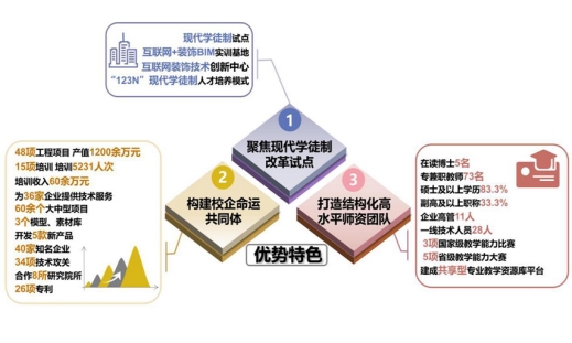 截至2021年11月,校企双方共同研发专业教程39个、课程标准32门、教材22部(累计发行23万册)、数字资源包39个,参与课题10余项,论文近30篇,发明及实用新型专利25项,学生获的数学建模全国一等奖等20余项,成功孵化法人企业3家、“微主体项目”40余家,累计收入1383余万元,完成社会培训1140人次,并顺利通过教育部第三批现代学徒制试点验收。