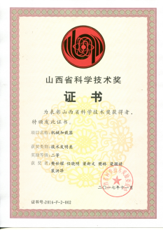 2017年,“机械加载器”项目获山西省科学技术奖技术发明类二等奖。