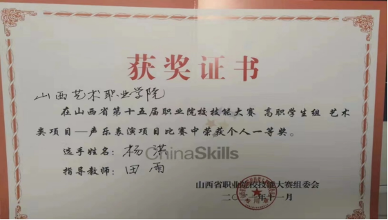 首先感谢学校领导一直以来对我的关心和照顾。我能够在一个尊重劳动、重视人才的人文环境中成长,是何其有幸。其次感谢我的专业老师田雨老师及其他各科老师们,是他们的辛勤付出,使我的学习水平有了显著提高。最后,在比赛过程中,领导和老师们不断为我加油打气,给予肯定,给我信心,帮助我释放压力,才使我能够超常发挥,取得一等奖的好成绩