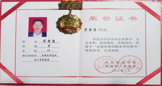 2016年5月参加“运城市爱岗敬业表彰大会”