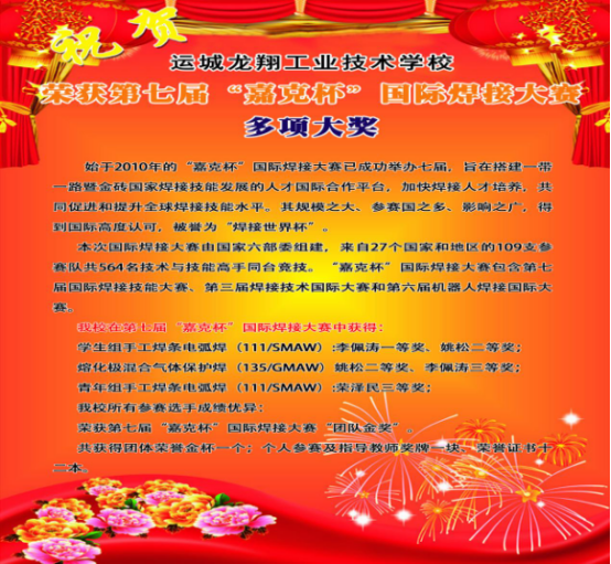 参加第七届“嘉克杯”国际焊接大赛剪影及荣誉