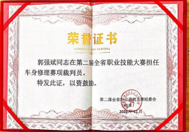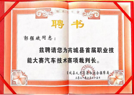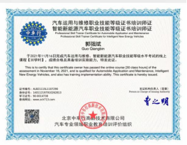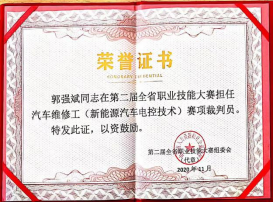 2021年1月,被聘请为山西省汽车维修行业协会专家组成员。11月,伴随着1+ⅹ制度的在龙翔落地实施,自己考取了新能源汽智能网联技术1+X职业资格培训师证书。