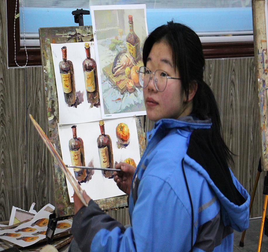 进入升学班以后,她学习上更加努力,并且因为乐于助人,同学们一致推选她为学习委员。为了不辜负老师和同学的期望,她努力学习文化课知识和专业知识。每天活动时间和晚自习下课之后,她带领同学们在教室画画、复习功课,一致得到了各个老师的好评。
