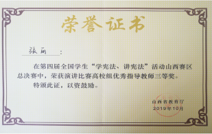 18级博雅班的雷庆斌同学曾深有感触地说,喜欢她的课是因为她总是将课程和现实生活相连,与学生关注的焦点相连,喜欢她晓之以理、动之以情的讲课方式,能够启发、激励、唤醒和点燃他们心中的梦想。就是这样一位同学,在她潜移默化的引导下,积极参加学校各类比赛。19年,代表学校参加全国大学生计算机信息素养大赛荣获“二等奖”,被评为“十佳学生标兵”, 21年,经专升本考试顺利考入山西警察学院。每当听到同学们取得可喜成绩,她内心总会有些激动,为自己能够从事思政事业感到骄傲与自豪!