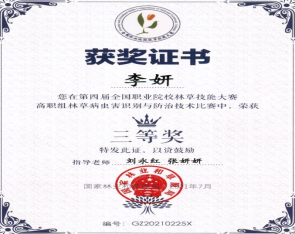 2021年7月第四届全国职业院校林草技能大赛在江苏农林职业技术学院举办。当我得到这个消息时,我没有丝毫犹豫就报名了,尽管报名的同学有三十几个,我没有因此退缩,反而更加努力的复习各种病虫害的图片以及背诵它们的科属种,还有各种农药的名称和作用,终于通过层层筛选我拥有了参赛机会。之后在训练中,我没有丝毫的懈怠,无论刮风还是下雨,都坚持着日复一日的训练,每天都有新收获。终于苦心人天不负,卧薪尝胆,三千越甲可吞吴,在第四届全国职业院校林草技能大赛高职组林草病虫害识别与防治技术比赛中取得了个人三等奖的好成绩,并获得了学院奖学金。
