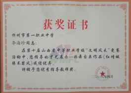 教学生涯中,李老师倾心指导,使同学们取得了优异的成绩。同时她也在第十届山西省中等职业学校“文明风采”竞赛活动中,获得了优秀指导教师奖,并且在她的指导下,让许多学生通过对口升学踏入了自己理想中的本科大学殿堂。