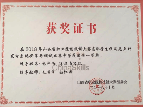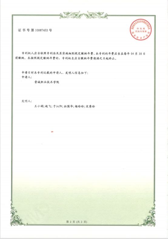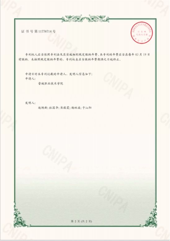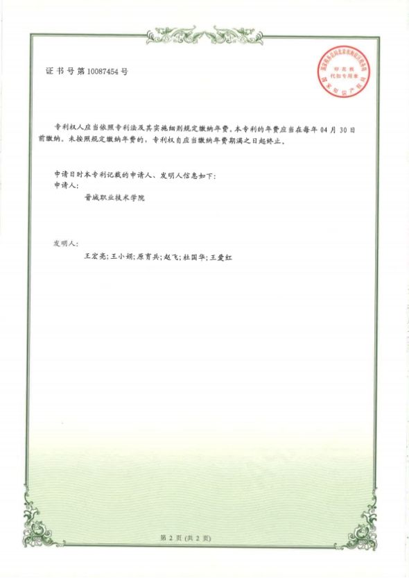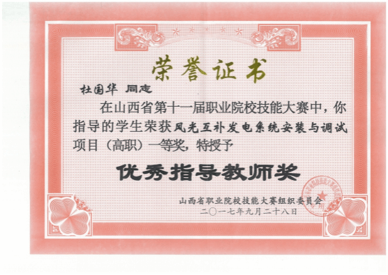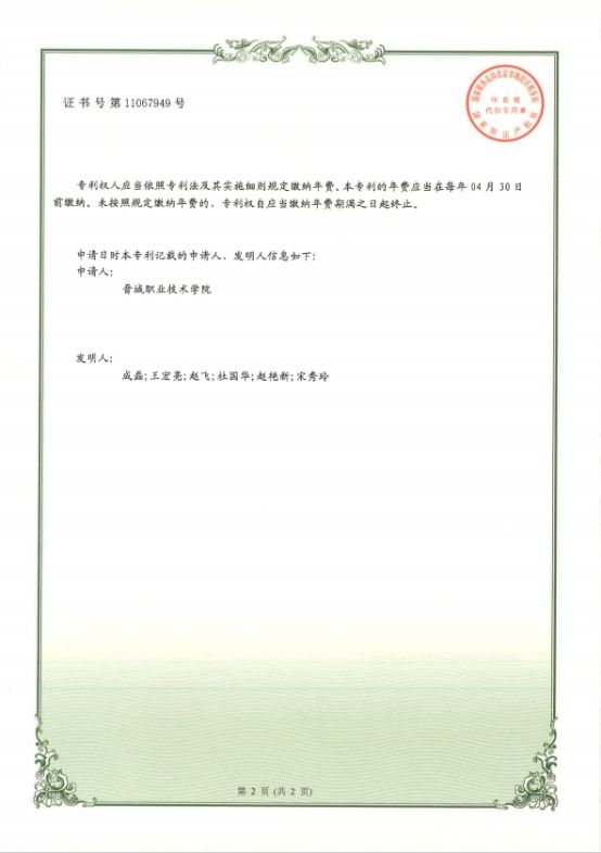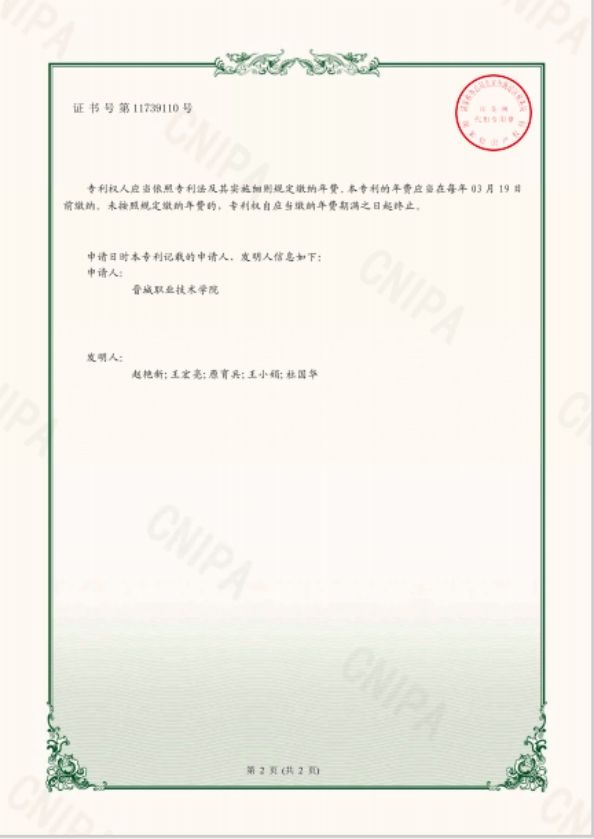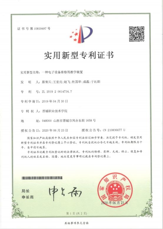 原育兵,男, 1977年5月出生,山西省阳城县人,学历本科,系我院机械电子工程系教师、维修电工技师,国家职业技能鉴定考评员、技能大赛优秀指导教师。2018年指导学生参加山西省业技术学院技能大赛“风光互补发电系统安装与调试”项目获二等奖。2019年指导学生参加山西省业技术学院技能大赛“光伏电子工程的设计与实施”项目获三等奖。2020年指导学生参加山西省第十四届职业院校技能大赛高职学生组”光伏工程的设计与实施项目”获三等奖,指导学生参加”机电一体化项目”获二等奖。2020年获得实用新型专利1项,名称为:一种电子设备维修用教学装置。