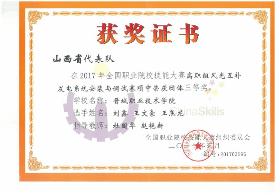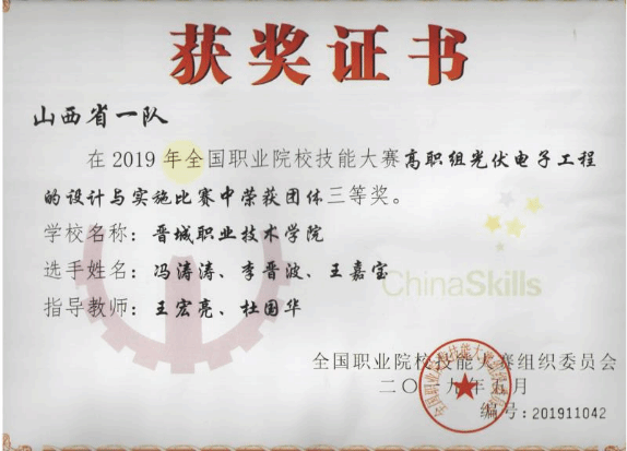 王宏亮,男,1966年1月出生,山西省高平人,学历本科,系我院机械电子工程系教师、国家职业技能鉴定考评员、技能大赛优秀指导教师,全国职业技能大赛优秀裁判。2019年6月指导学生参加全国业技术学院技能大赛“光伏电子工程的设计与实施”项目获国赛三等奖。主持课题多项。曾主编写专业教材《低压电器控制线路的安装与维护》。实用新型专利5项。
