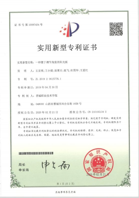 20、专利证书:一种便携式小型太阳能电池充电器的防护装置