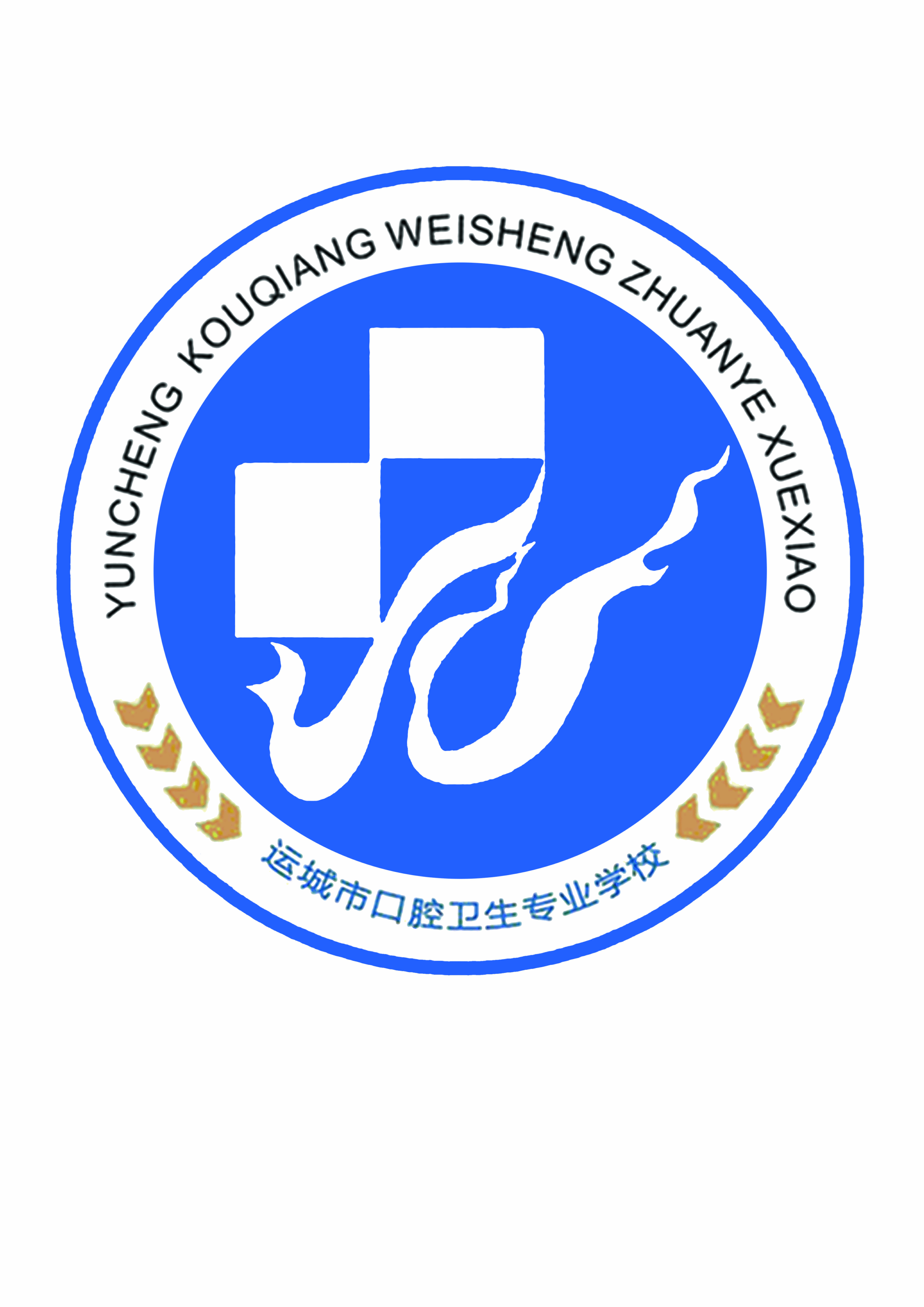 校徽内圆代表全校一体,外圆代表世界一体,拼音字母为学校全称,中心图案为两个白衣天使,代表纯洁善良,守护健康,白色方格代表劳动、社会、头脑、双手。整个校徽图案代表学校未来的发展步步高升、年年向上。