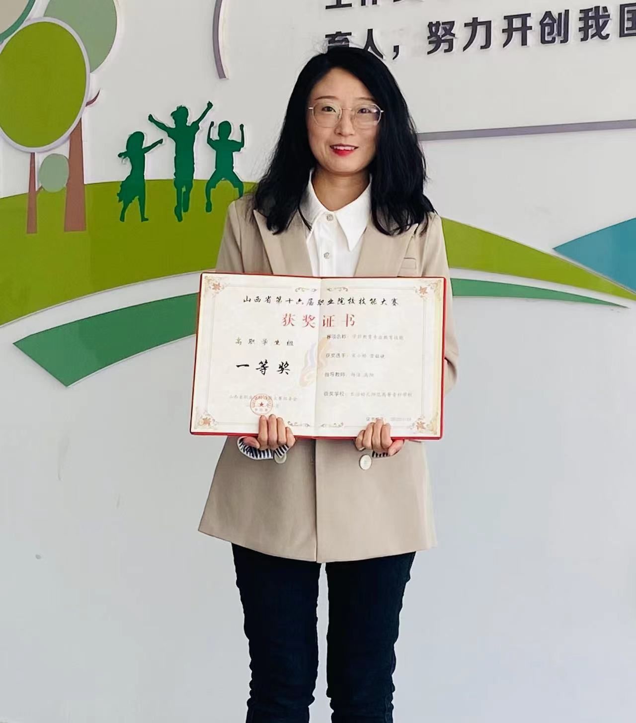 我们是长治幼儿师范高等专科学校高职学生组冠军指导教师杨洁、高阳。本次大赛为我校年轻教师专业能力提升提供了绝佳的机会。在备赛过程中,我校十三名指导教师团队经过近七个月的不懈努力、用心研磨、精心指导,终于拿到了山西省第十六届职业院校技能大赛学前教育专业高职学生组的冠军。每位指导教师在这一过程中都获得了极大的提升。我和高阳老师全程参与了本次指导,不仅针对赛题反复研磨、反复推敲,精益求精,更注重激发学生内在动力。在比赛中,高职学生组冠军宋小娇和常敏婕同学脱颖而出,以稳定的发挥、精彩的表现赢得了各位专家的好评。