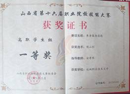 此次参赛,有压力也有动力。老师常说,不拼一下,你就不知道自己有多优秀。从一开始备赛,我就定下了预期目标,并制定了严格的作息时间,我也一直在激励自己,只有努力了,尽力了,才会有满意的结果。最终我也如愿以偿。经过此次技能大赛,我学到了很多。对参赛选手身份而言,比赛赛得不仅仅是专业技能,更考验的是自我心理素质。如何在紧张的时刻镇静自我,如何在紧张的气氛中保持敏捷的思维,做到临危不惧、处事不惊。此次大赛,让我在语言表达、组织能力、抗压能力等方面都得到了锻炼。