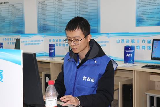 许雁杰,1994年生人,2020年6月硕士毕业于广西大学。同年12月进入太原城市职业技术学院信息工程系担任教师。在完成平时的课程任务之余,积极投身于职业技能大赛相关工作,2021年担任指导教师,带领学生参加第十五届网络系统管理赛项。但可惜的是,由于经验不足,在比赛中成绩并不理想。在失利之后,他并没有气馁,而是积极总结失败经验,更加刻苦努力的投身于第十六届技能大赛的准备中:一方面,自己积极准备参加教师组比赛,赛前制定详细的学习计划,利用下班以及双休时间积极备赛,学习基础知识,研究每一条配置命令。为了提升熟练度,一个知识模块常常练习数十次;另一方面,在学院以及系部的支持下,从指导学生训练到提供后勤保障,给参赛的学生提供了良好的训练环境。