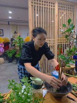 殷慧娟老师制作中国传统插花—碗花工作照