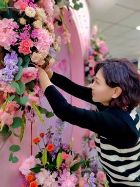 作为一名职业院校教师,殷慧娟老师不仅注重提升自己专业的知识素养,并注重提高自己的技能水平和实际操作能力。为了更好的提高自己的技能技艺,她利用所有课余时间学习花艺。即使在疫情时期,依然坚持线上学习,她努力在各个方面专心学习,勤学苦练,不断提升自己的内涵。