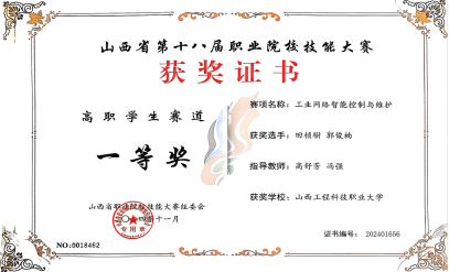 在山西省第十八届职业院校技能大赛《工业网络智能控制与维护》赛项中,山西工程科技职业大学智能制造学院学生田桢驸、郭俊楠从26支参赛队伍中脱颖而出,一举斩获《工业网络智能控制与维护》高职组冠军,实现学校在该赛项的历史性突破。